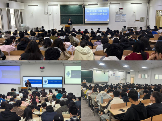 为进一步拧紧学生安全“思想弦”,切实守护学生生命财产安全,引导全体学生将“生命至上、安全第一”理念根植于心,11月4日,基础学院召开“筑牢安全防线,护航青春成长”主题年级大会。全体辅导员与各年级学生齐聚会场,共同为校园安全建设凝心聚力,织密校园安全“防护网”。
