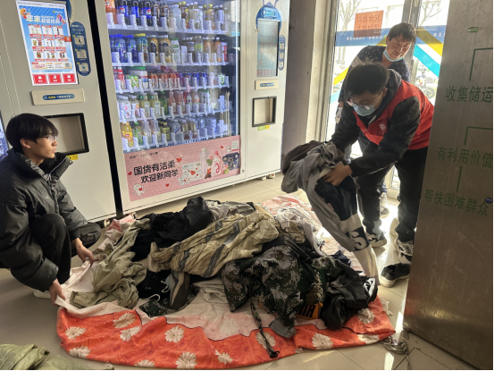 活动当天,基础学院近20名志愿者们早早在校博苑广场设置好捐赠点位,来集中回收个人所捐赠的旧衣物。同学们秉持着“这些衣服放在家里也是闲置,能送给需要的人,特别有意义”的信念陆续提着整理好的衣物前来,其中不乏暖和的卫衣、厚实的外套。每一件衣物都经过细心整理,叠放得整齐有序,承载着大家沉甸甸的爱心。另外,志愿者们带领省慈善协会人员将各公寓楼内设置的衣物回收箱中的旧衣物整理回收。