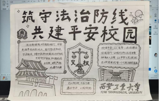 为深入贯彻落实国家法治宣传教育规划,增强大学生法治观念与安全意识,由基础学院团委主办的“筑牢法治防线,共建平安校园”手抄报创作大赛,在经历作品征集、初评、线上投票及专业评审环节后,于近日圆满结束。