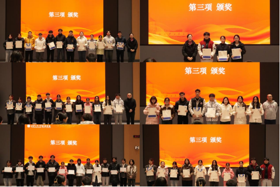 随后,周佳阅宣读了《基础学院2025年度学生表彰名单》,对在学业科研、学科竞赛、志愿服务等方面表现优异的集体和个人予以表彰。获奖代表依次上台接受颁奖,现场掌声不断,展现了基础学子奋发有为、追求卓越的青春风采。