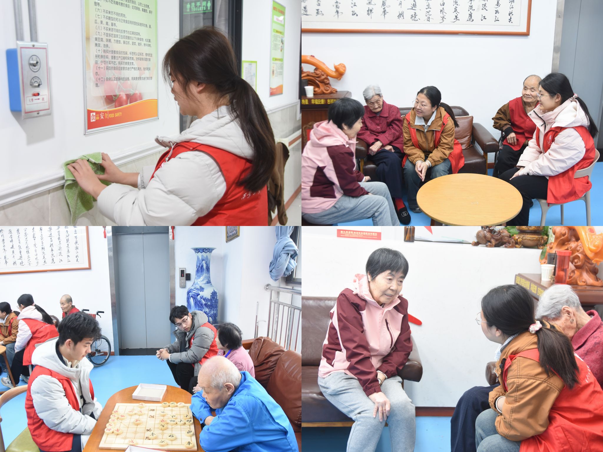 上午九时许,志愿者们满怀热忱抵达养老院,迅速按照预先分工投入到服务中。一部分志愿者化身“清洁小能手”,细致地擦拭走廊扶手、整理房间内务,不放过任何卫生死角,为老人们营造了更加整洁舒适的居住环境。另一部分志愿者则围坐在老人身边,与他们促膝长谈、对弈消遣,耐心倾听老人们讲述过往岁月与人生感悟,用真诚的陪伴驱散了老人们的孤单,现场暖意融融。