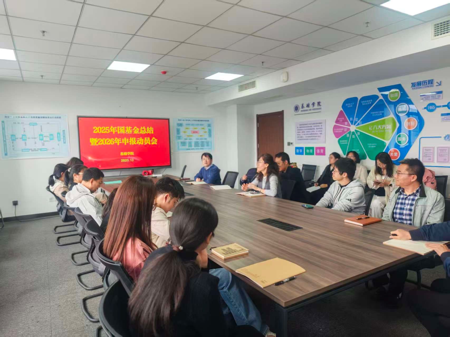 2025年10月13日上午,基础学院组织召开2025年度国家基金申报工作总结暨2026年度申报动员会。党委书记张英,副院长吴亚杰、文安及基础学院科研骨干教师参加了本次会议。
