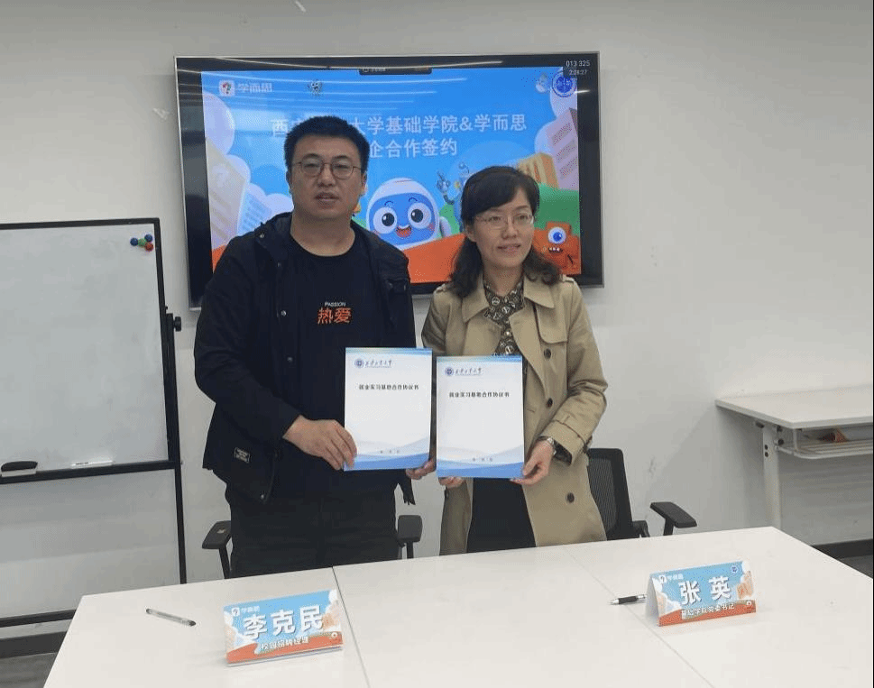 座谈会最后,张英与学而思教育西安分校代表李克民签署了《就业实习基地合作协议书》。