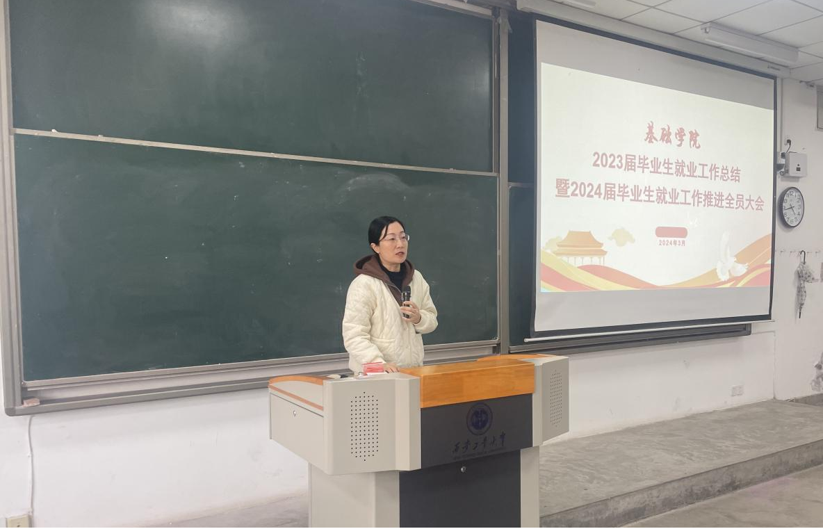 3月7日,基础学院组织召开2023届毕业生就业工作总结暨2024届毕业生就业工作推进全员大会。会议由学院党委书记张英主持,学院全体教师参加会议。