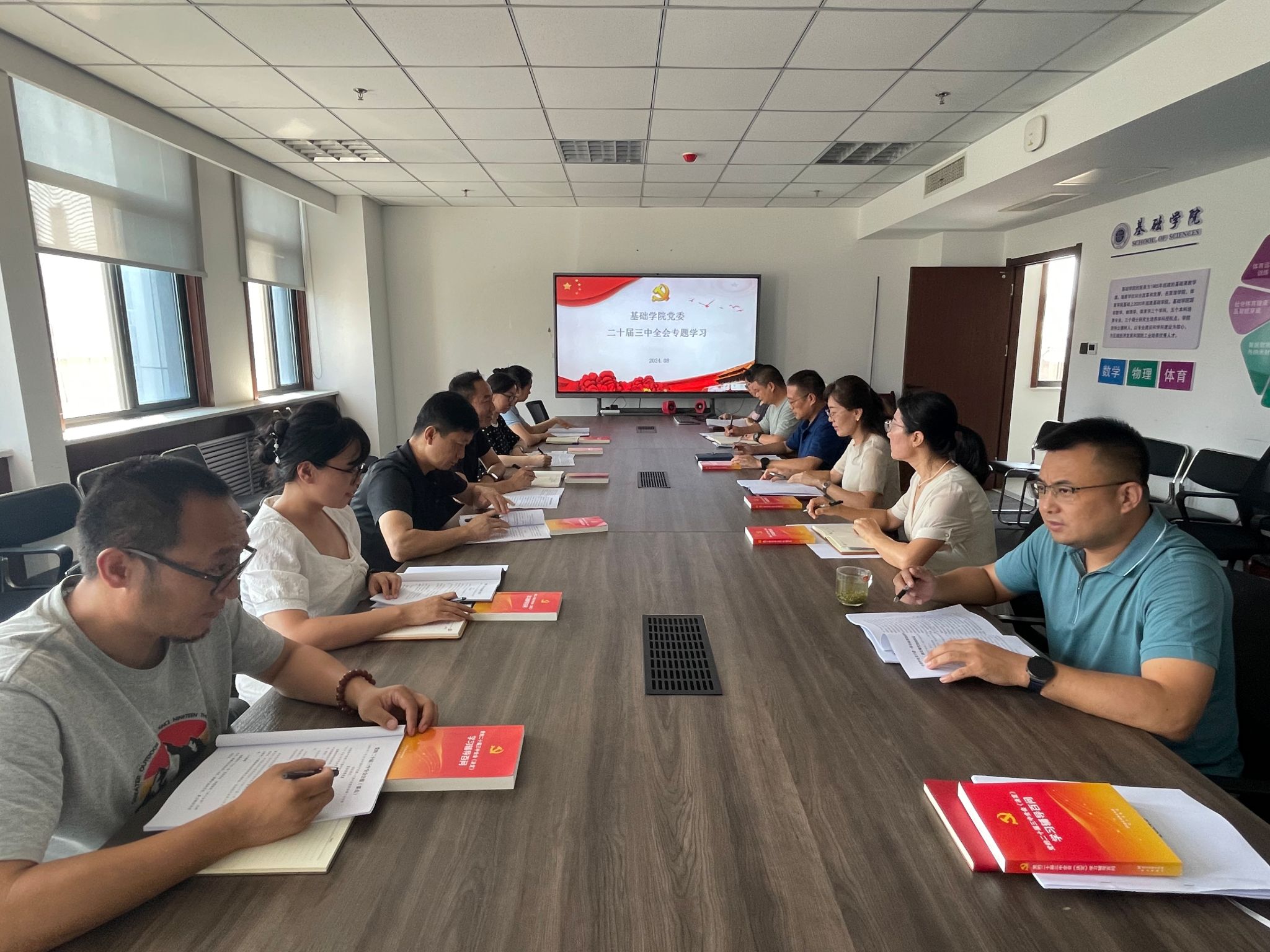 8月29日,基础学院党委召开理论学习中心组(扩大)学习会,专题学习党的二十届三中全会精神。学习会议由党委书记张英主持。