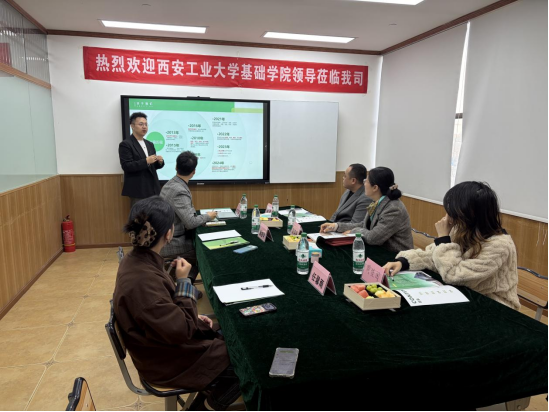 张艳霞代表基础学院向两家企业详细介绍了学校的办学特色、学科优势以及学院的专业设置、人才培养模式、毕业生就业情况。她表示,基础学院始终致力于培养适应社会发展需求的高素质人才,此次赴企业交流,为进一步加强与企业的沟通对接,探索校企合作的新领域、新方式,希望未来能与两家企业在人才培养、就业指导、实习就业、产学研合作等方面建立深度合作关系,实现校企资源共享、优势互补、互利共赢。